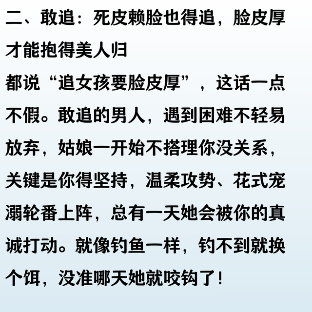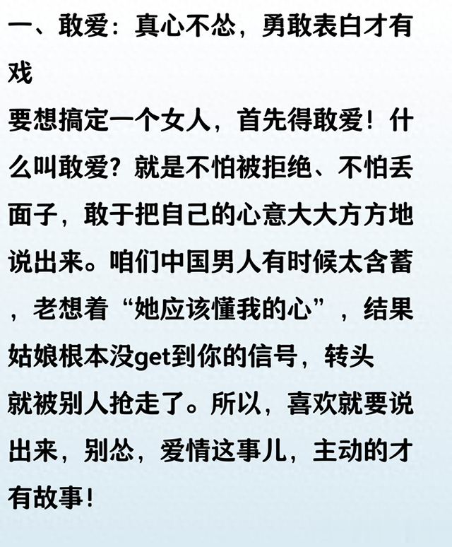 想要真正搞定一个女人,其实关键就看你有没有“四敢”:敢追、敢宠、敢担当、敢承诺。抓住这四点,感情路上自然顺风顺水,下面详细说说!